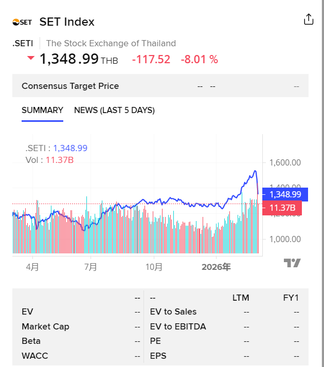 財聯(lián)社3月4日電,泰國SET指數(shù)跌8%,觸發(fā)市場暫停交易。